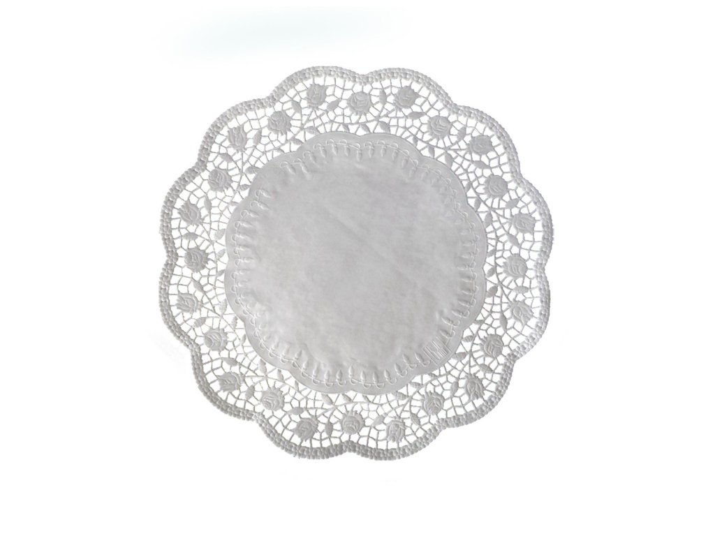 Kvalitné papierové dekoračné krajky s priemerom 28 cm. Okrúhle dekoračné krajky sú vhodné na servírovanie cukrárenských výrobkov a iných špecialít.