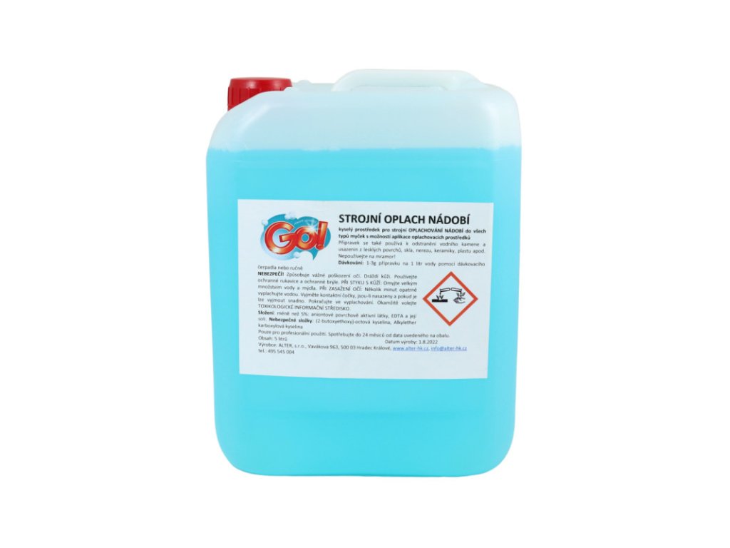 GO! strojové oplachovanie riadu 5L Kyslý prostriedok pre strojové OPLACHOVANIE RIADU do všetkých typov umývačiek s možnosťou aplikácie oplachovacích prostriedkov. Prostriedok sa tiež používa na odstránenie vodného kameňa a usadenín z lesklých povrchov, skla, nerezu, keramiky, plastu a pod. Nepoužívajte na mramor! Prostriedok je určený len pre profesionálne použitie. Dávkovanie: 1-3g prípravku na 1 liter vody pomocou dávkovacieho čerpadla alebo ručne. NEBEZPEČENSTVOI Dráždi kožu. Spôsobuje vážne poškodenie oči. Noste ochranné rukavice a ochranné okuliare. PRI KONTAKTE S POKOŽKOU: Umyte veľkým množstvom vody a mydla. PO ZASIAHNUTÍ OČÍ: Niekoľko minút ich opatrne vyplachujte vodou. Ak používate kontaktné šošovky a je to možné, odstráňte ich. Pokračujte vo vyplachovaní. Okamžite volajte TOXIKOLOGICKÉ INFORMAČNÉ CENTRUM Zloženie: menej ako 5%: aniónové povrchovo aktívne látky, EDTA a jej soli. Nebezpečné zložky: (2-butoxyethoxy)-octová kyselina, Alkylether karboxylová kyselina. Spotrebujte do 24 mesiacov od dátumu výroby uvedeného na obale.