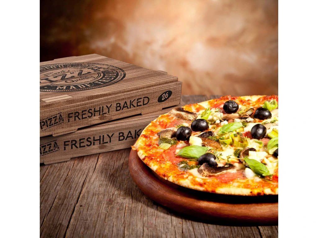 Krabica na pizzu (mikrovlnitá lepenka) kraft 26 x 26 x 4 cm [100 ks]