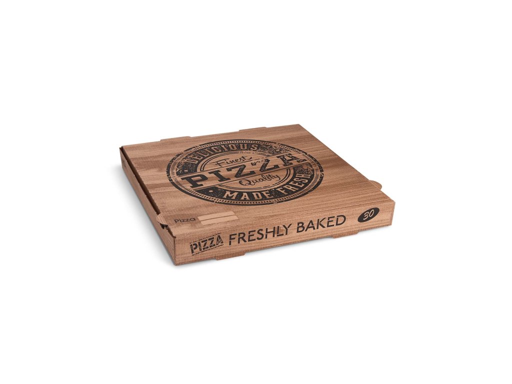 Krabica na pizzu (mikrovlnitá lepenka) kraft 30 x 30 x 4 cm [100 ks]
