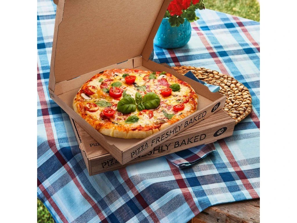 Krabica na pizzu (mikrovlnitá lepenka) kraft 36 x 36 x 4 cm [100 ks]
