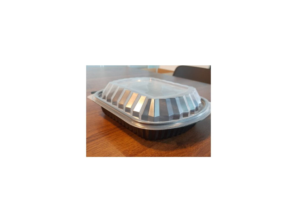 Menu misa oválna čierna, objem 1300 ml, balená spolu s viečkom po 250ks. Je vhodná aj do mikrovlnnej rúry.