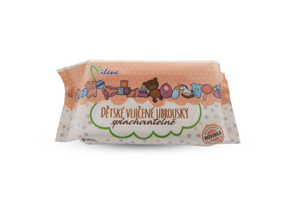 Miléne detské vlhčené utierky ,,splachovateľné,, NOVINKA Detské vlhčené toaletné utierky balené 56ks ,,splachovateľné,, biologicky odbúrateľné. Výnimočná pevnosť a zároveň jemnosť s príjemnou vôňou. Vlhčené detské toaletné utierky sú vyrobené zo špecialne vyvinutého materiálu wetlaid, jeho hlavnou výhodou oproti bežným vlhčeným utierkam je jeho biologická odbúrateľnosť. Sú príjemné na dotyk a jemne čistia. V prípade spláchnutia použite maximálne 3 kusy. Len na vonkajšie použitie. Uchovávajte mimo dosahu detí.