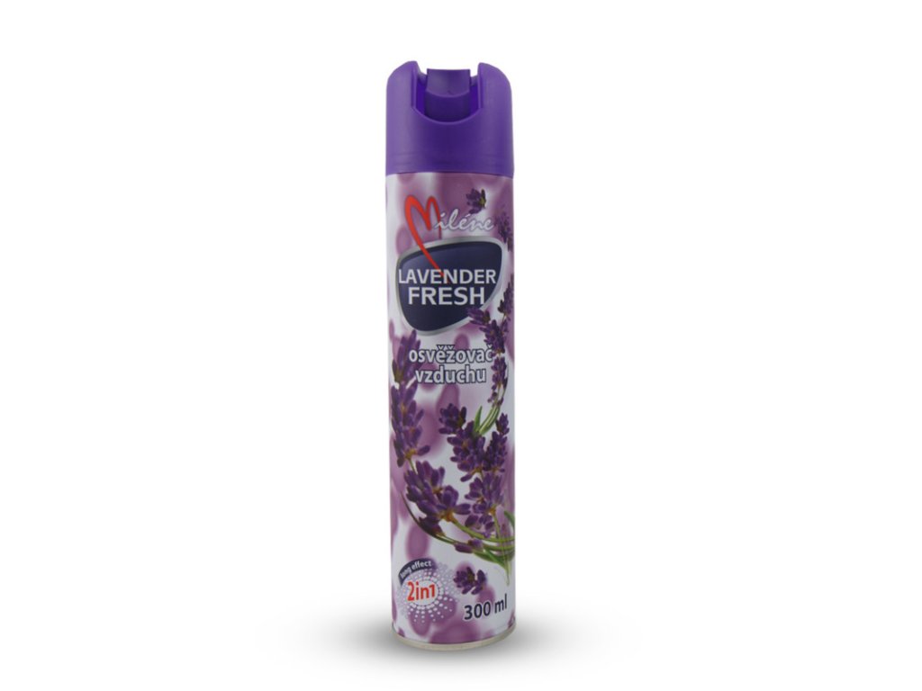 Osviežovač vzduchu Miléne 2 v 1 levandula 300 ml Osviežovač vzduchu Miléne levandula v pohlcuje nežiaduce pachy a príjemne prevonia váš domov i pracovisko príjemnou dlhotrvajúcou levanduľovou vôňou Sprej s objemom 300 ml