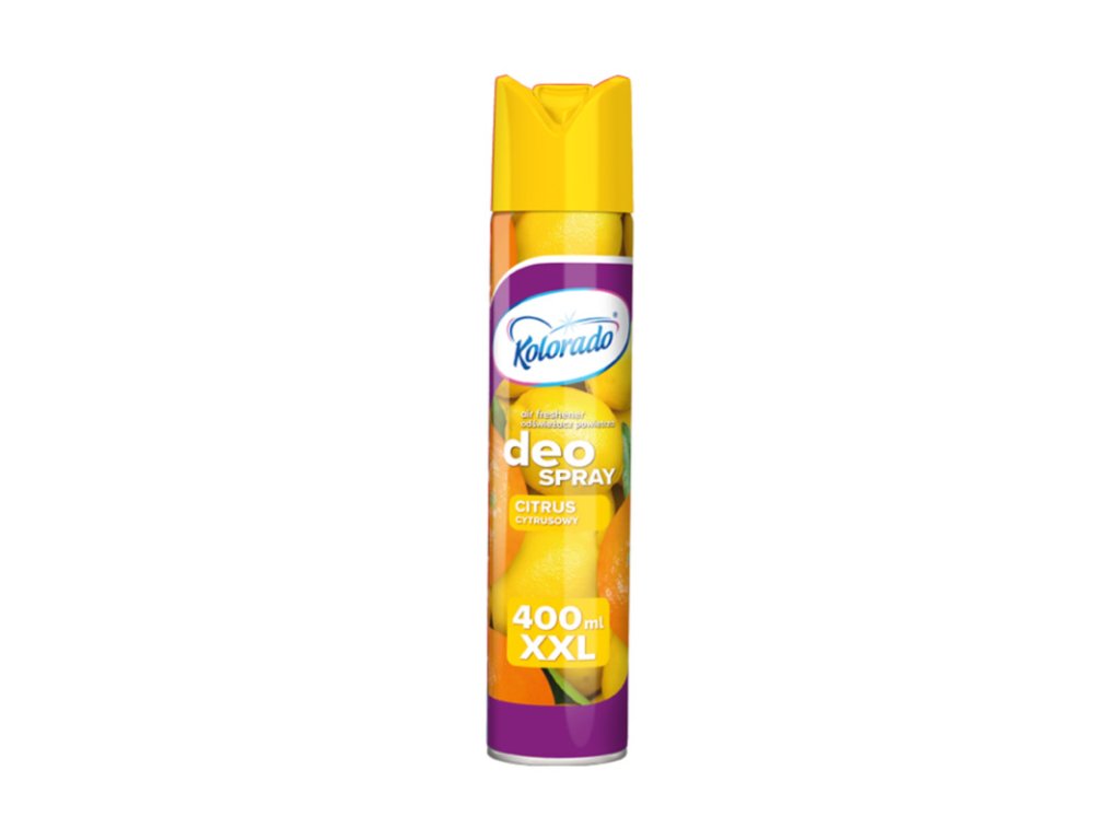 Osviežovač vzduchu XXL Kolorado Deo spray CITRÓN 400ml Osviežovač vzduchu v spreji odstráni nepríjemné pachy a zaistí príjemnú sviežosť v miestnosti. Veľkosť balenia XXL : 400ml