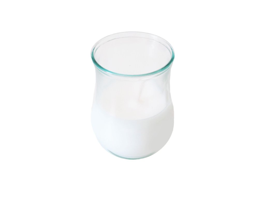 Veľká biela sviečka v pohári, neparfumovaná.