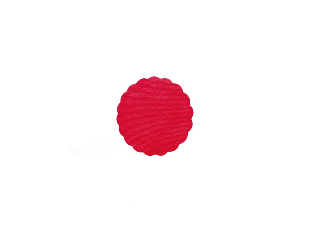 Papierové rozetky na podšálku s priemerom 9 cm v červenej farbe.