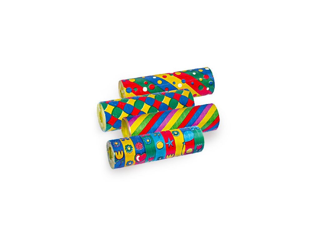 Papierové pruhované serpentíny s rôznymi motívmi.