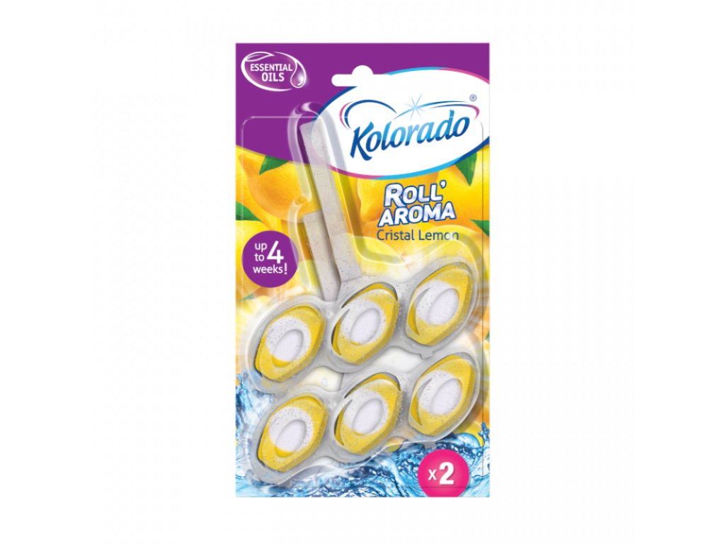 WC Blok Kolorado Fresh Toilet Krištáľový citrón 2x51g Trojfázový WC blok Bezfarebný, dizajnérsky košík Samostatné prvky pracujúce veľmi efektívne Bieliaci účinok v dôsledku obsahu aktívneho telenu Zabraňuje usádzaniu vodného kameňa Bohatá pena vďaka špeciálnym prísadám Mimoriadne silná a dlhotrvajúca aróma vďaka éterickým olejom Funkčnosť až 4 týždne