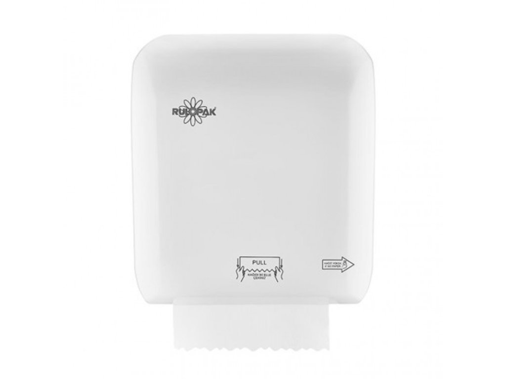 Nie je potrebná elektrická energia ani batéria, vydáva papier manuálne a veľmi jednoducho. Papierová utierka sa ťahá držaním na oboch stranách, pomocou automatického noža sa odrežie na dĺžku 23 cm. Zásobník je uzamykateľný. Rozmer: 31x35,5x21,4 cm priemer max 19 cm, šírka 21 cm Neperforovaný papier.